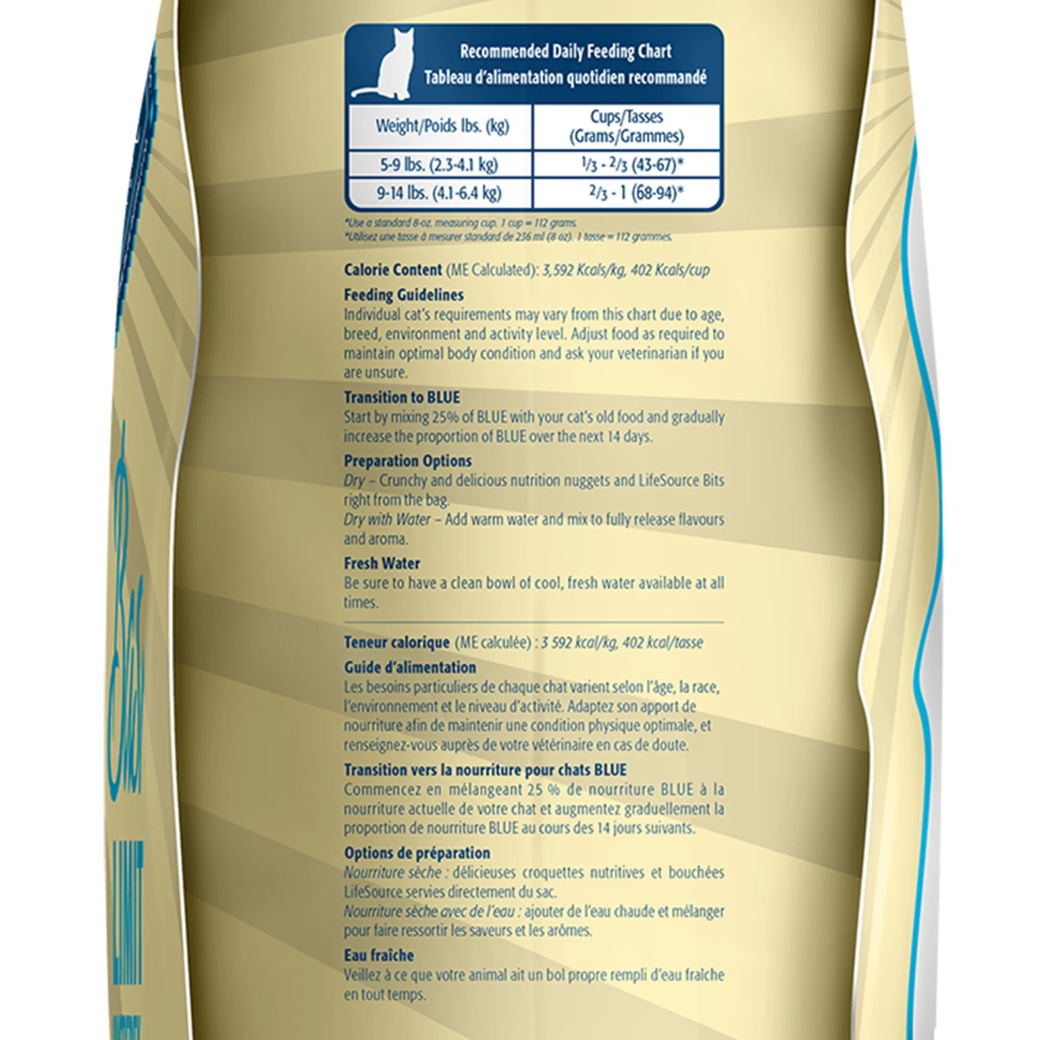 Start by mixing 25% of BLUE with your cat’s old food, and gradually increase the proportion of BLUE over the next 14 days.