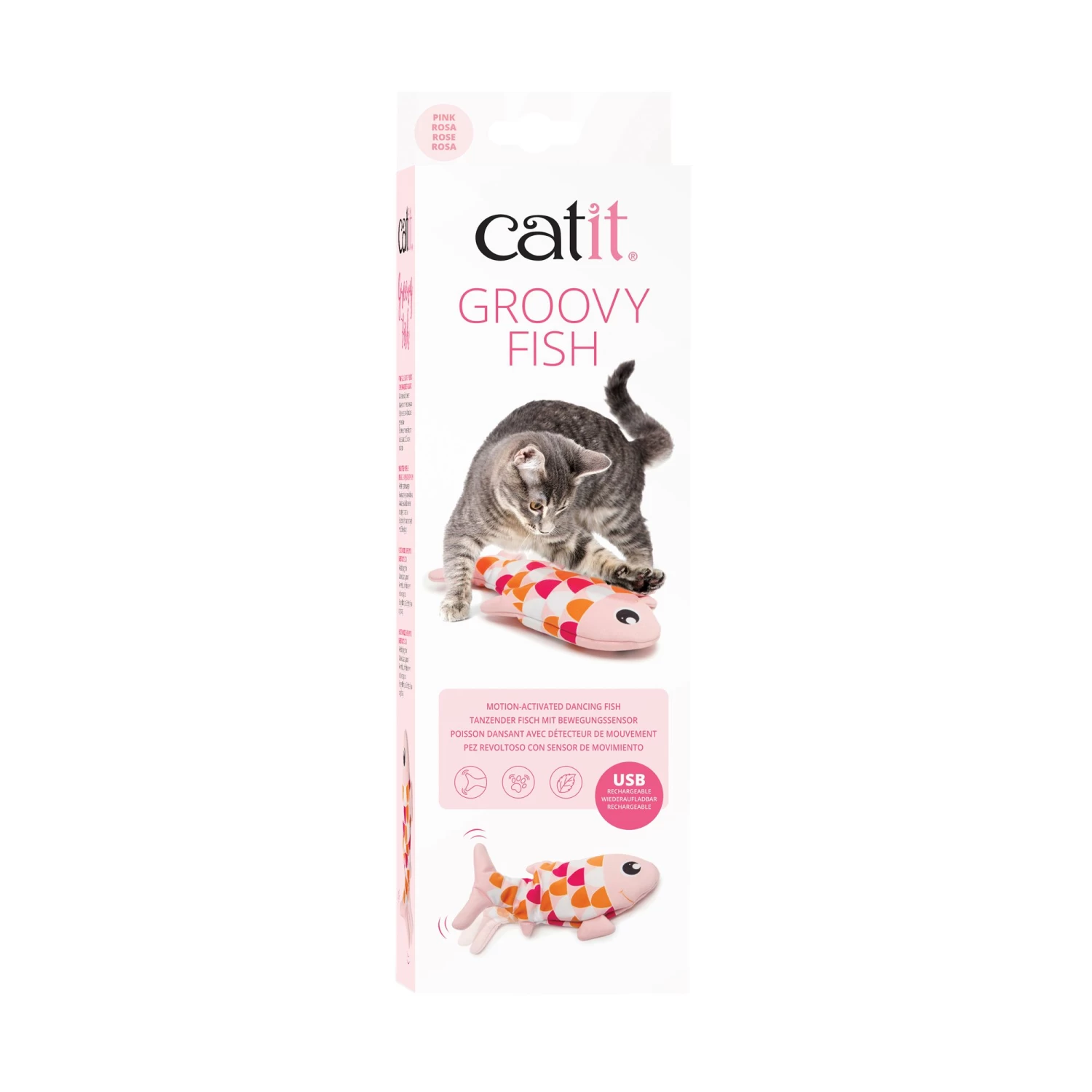 The Catit Groovy Motion Activated Dancing Fish grooves and moves to entertain and engage your cat. Paw activated and USB rechargeable, it also includes catnip to pique your cat’s interest and bring additional excitement.