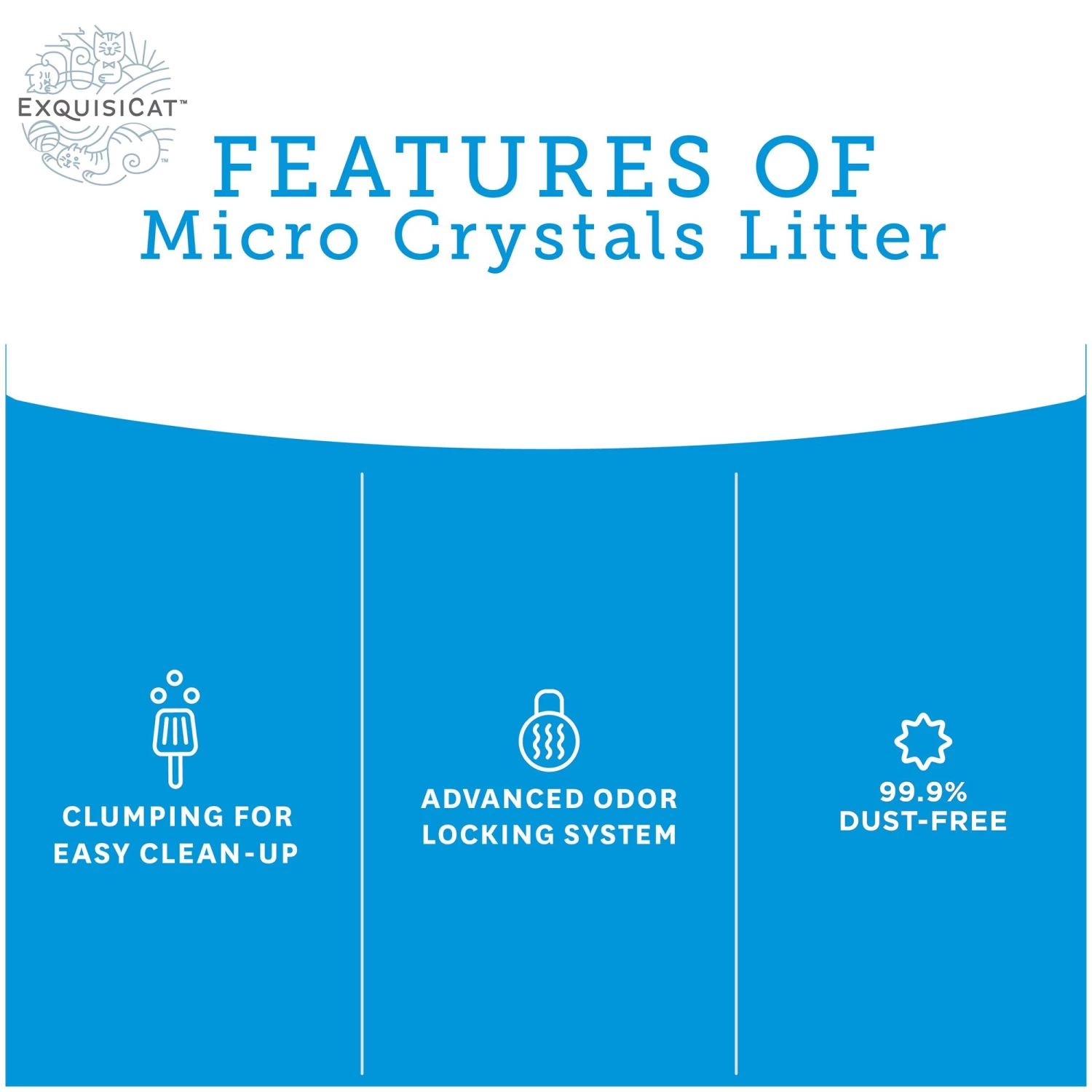 Exquisicat Clumping Micro Crystals are pleasant for cats, easy to clean, and tough on odors. Perfect for multi-cat households, the advanced clumping system makes cleaning your litter box easy while odors are kept from advancing throughout your house. Only at PetSmart.