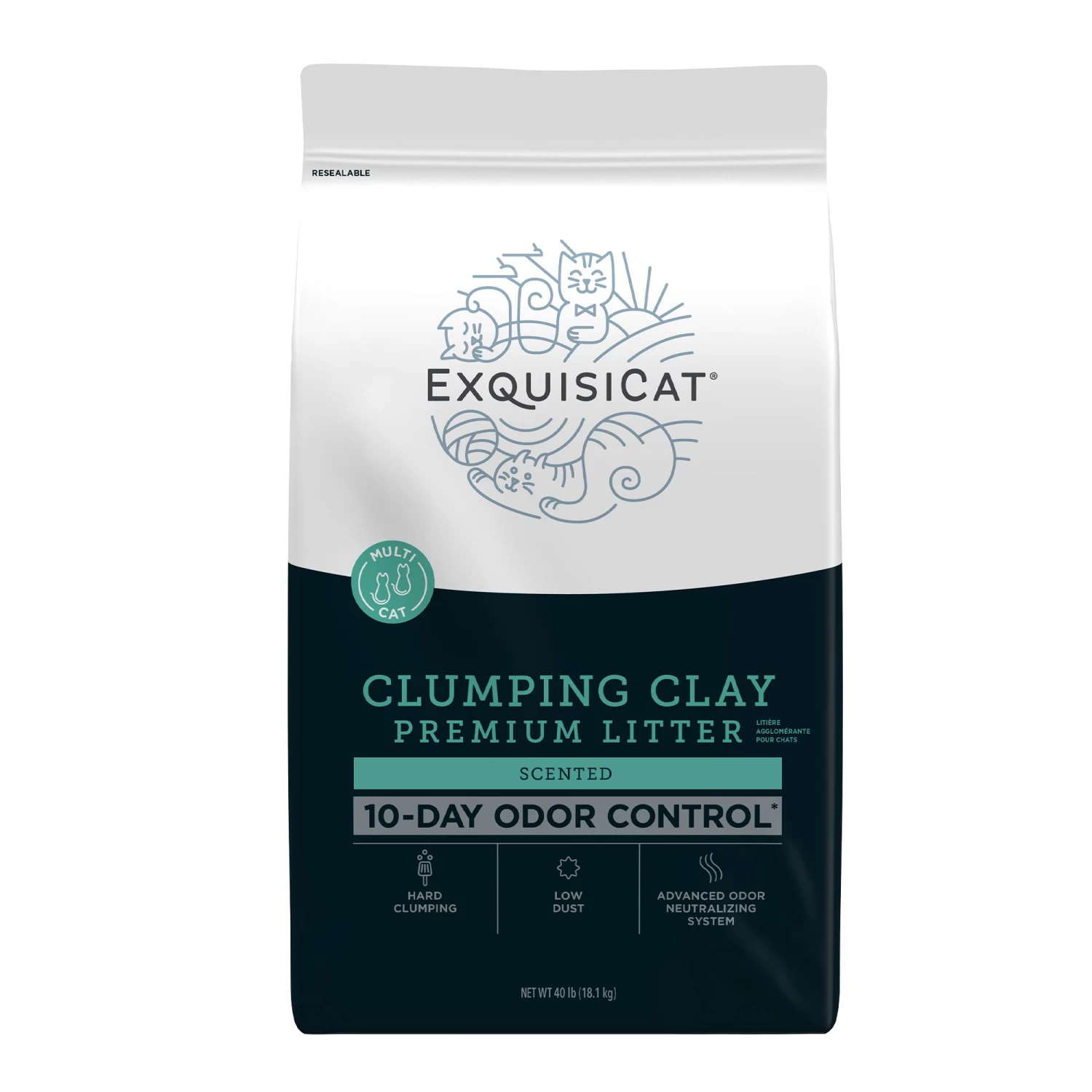 ExquisiCat Clumping Clay Premium Cat Litter is the perfect choice for multi-cat homes. This hard-clumping clay litter is virtually dust-free, and gets to work quickly eliminating litter box odors. ExquisiCat offers you and your cat a full line of premium litter products to fit your everyday needs. With ExquisiCat premium litter, you can spend more time with your cat and less time worrying about their litter box. Only at PetSmart.