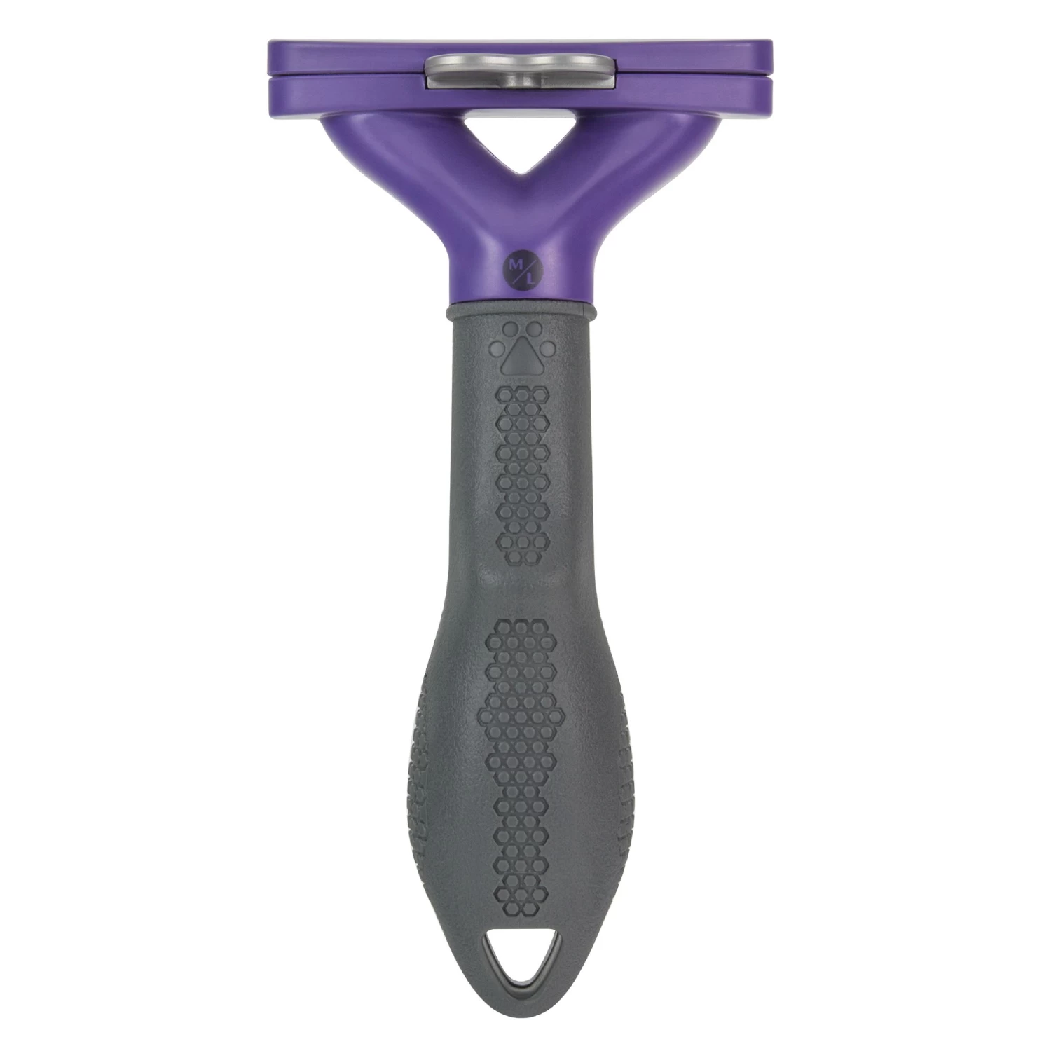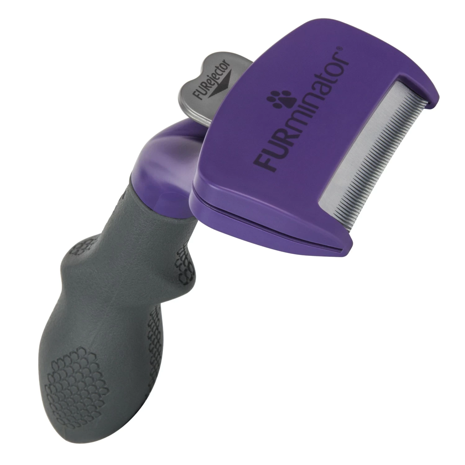 The FURminator Undercoat deShedding Tool for cats removes the loose hair from shedding, and helps keep the coat dirt- and debris-free. The tool is specially designed to reach through the topcoat to remove loose undercoat hair and undercoat without damaging the topcoat or cutting the skin (when used as directed). DeShedding can help reduce hairball formation in cats because fewer loose hairs are consumed during self-grooming. The ergonomic handle makes grooming easy, and the FURejector button releases hair with ease. The Curved Edge conforms to your pet’s natural build and shape for comfort. Use weekly on cats with double coats. This tool is for medium/large cats with short hair.