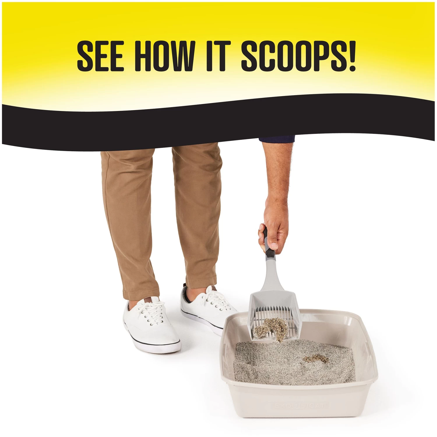 Fill litter pan with 3-4 inches of cat litter to allow for pawing and covering.