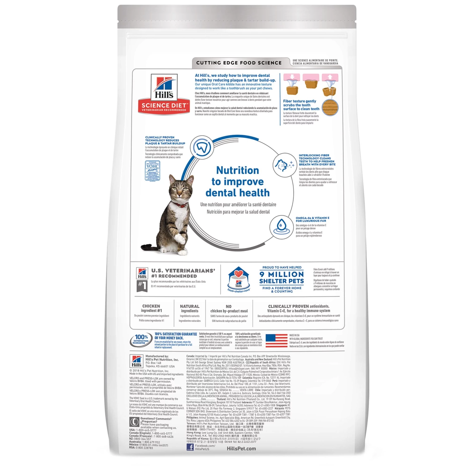 Good dental health for cats is vital to their overall health and wellbeing. Hill’s Science Diet Oral Care dry cat food provides precisely balanced nutrition to improve dental health in your grown cat using a clinically proven kibble technology. This cat food made with natural ingredients uses an interlocking fiber technology to scrub and clean cat teeth, freshening breath with every bite. Plus, because every cat wants healthy fur, omega-6s and vitamin E are added to nourish the skin and coat. There’s more to love with the new look of Science Diet.