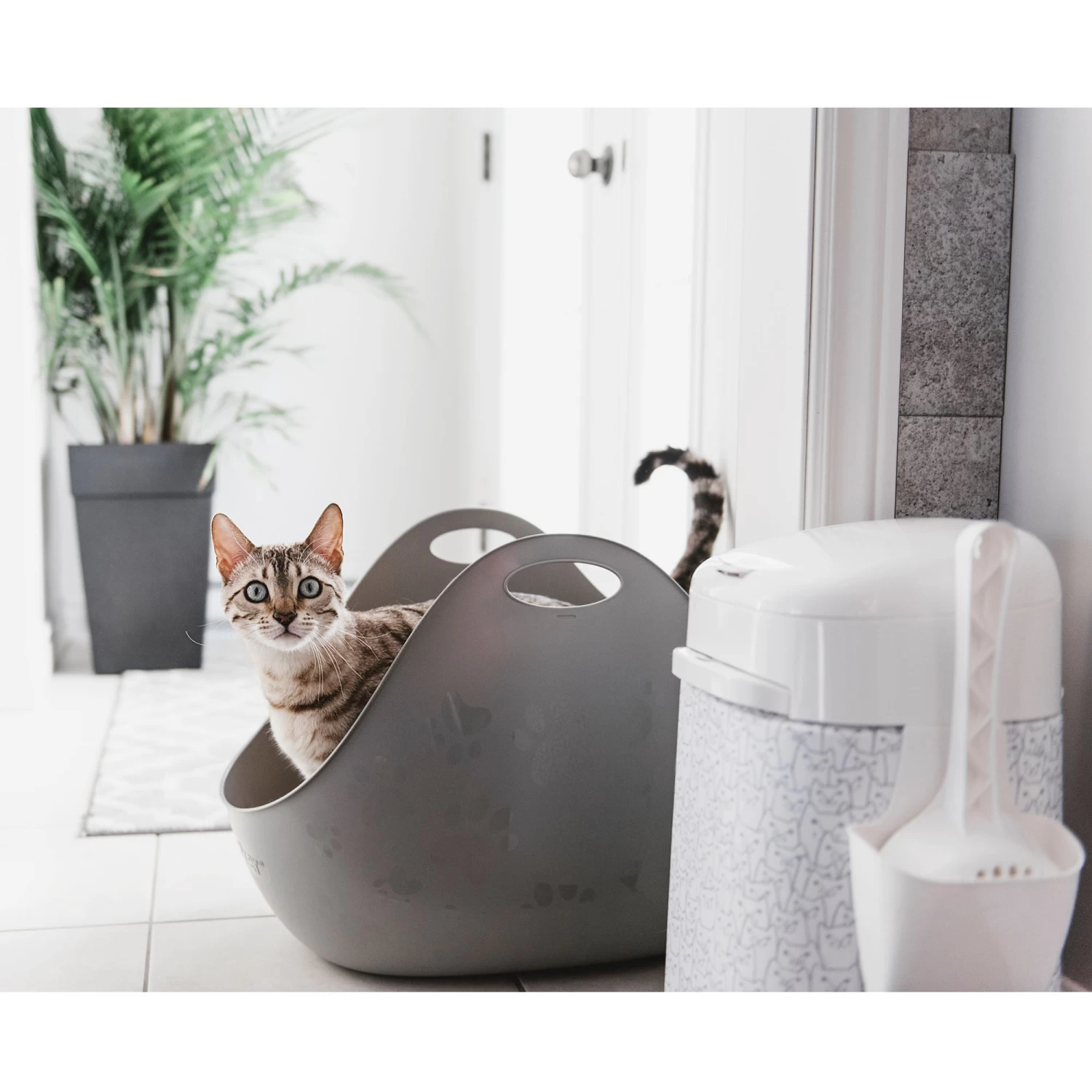 Directions: LitterLocker’s new elegant and playful litter box is specifically designed to facilitate cat litter maintenance. More than a new designed litter box, thanks to its integrated handles, soft rounded corners, high and flexible edges, that makes cat litter cleaning fast and effortless!