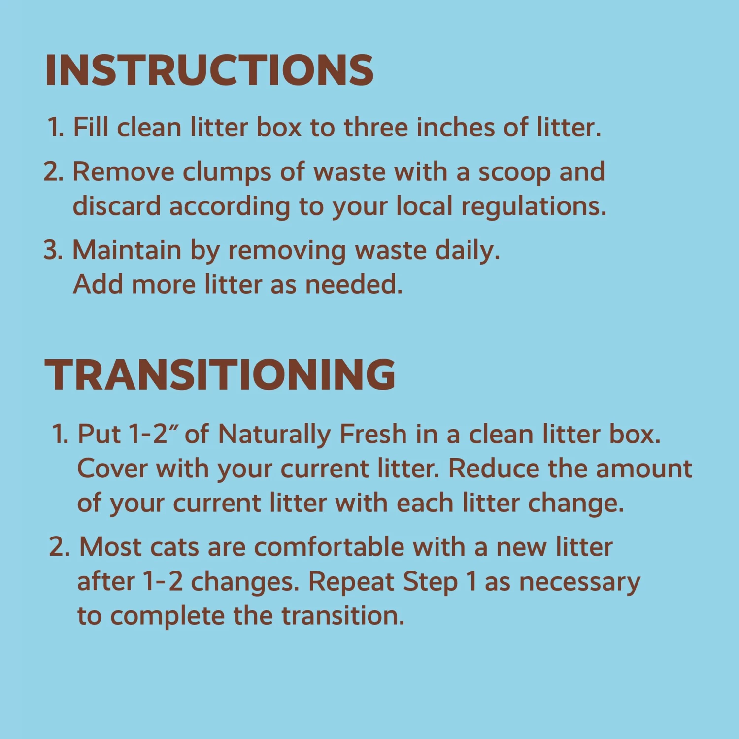 1) Fill a clean litter box to the recommended level of three inches of Naturally Fresh Walnut Pellet Litter.