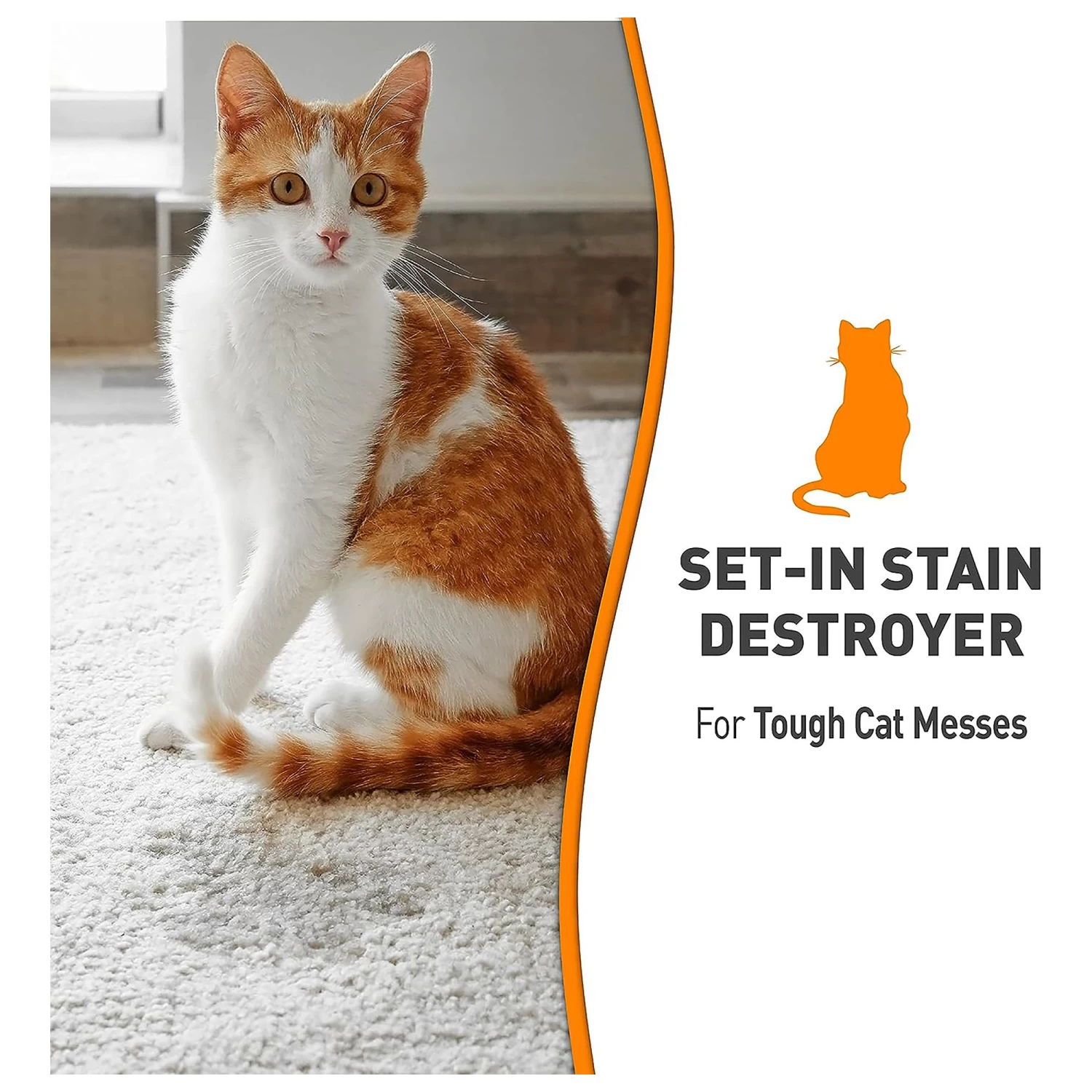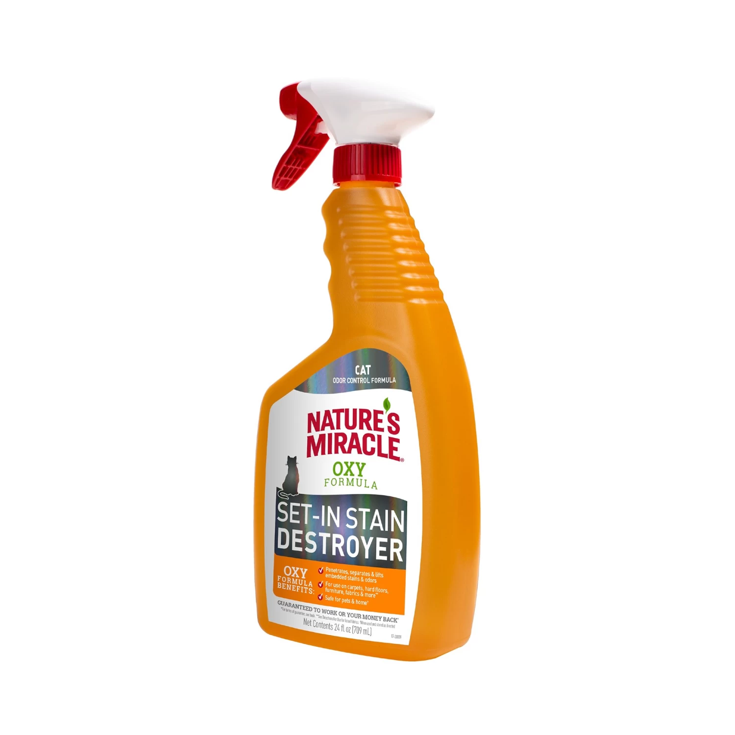 Nature’s Miracle Set-In Stain Destroyer can be used to treat your most stubborn, deep-set cat stains and odors while freshening with a light orange scent. The oxygen concentrate formula penetrates, separates and lifts embedded stains and odors on carpets, hard floors, furniture, fabrics and more.