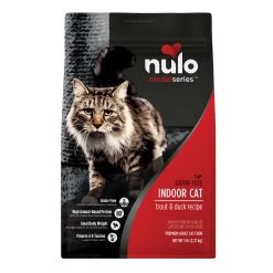 With a grain, gluten, corn, wheat, soy, potato, meat by-product, GMO and artificial flavor, color and preservative-free recipe, this Nulo MedalSeries Grain-Free Trout & Duck Recipe Indoor Cat Food is packed with healthy, nutritious ingredients to help your cat thrive. The food contains a probiotic to help promote your feline’s digestive health.