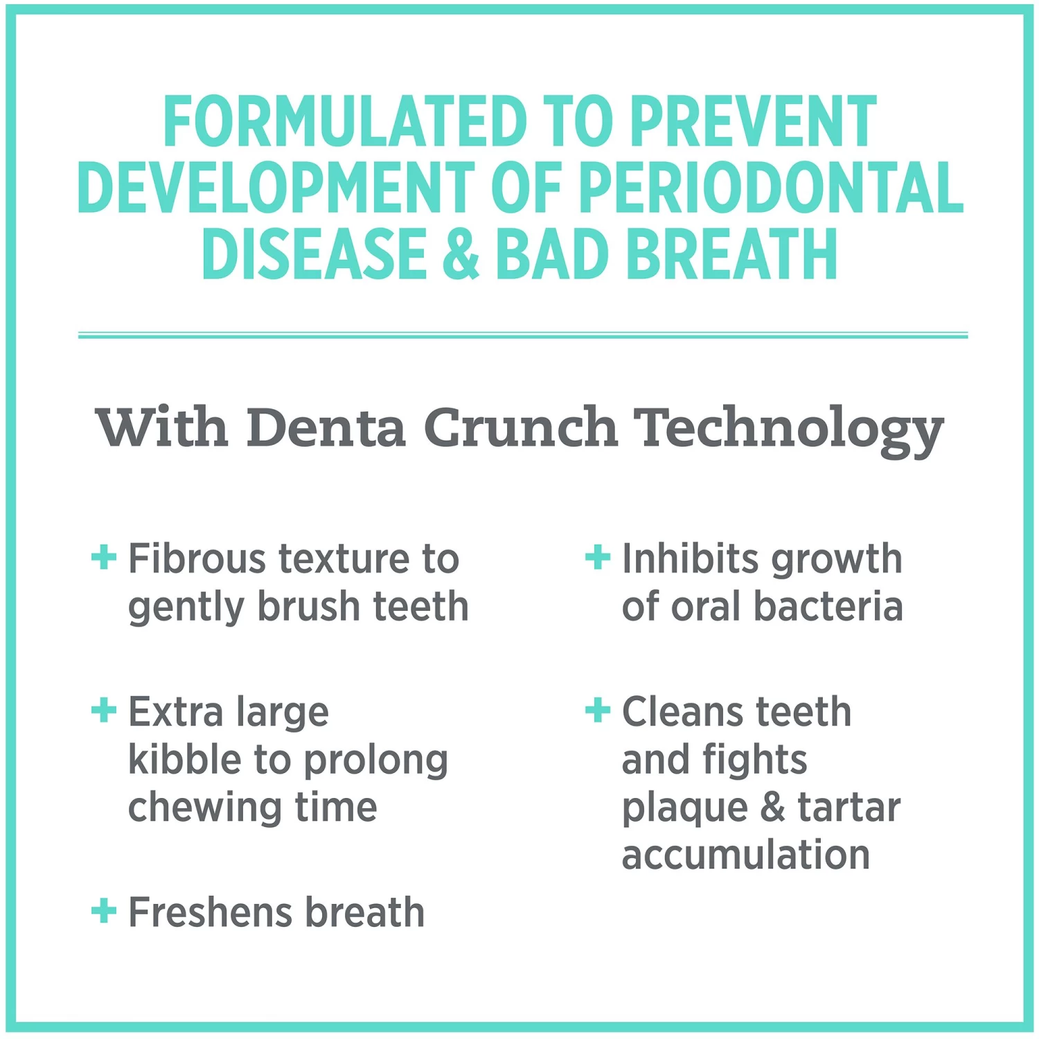 Nutrience Care Oral Care Dental Crunch Technology is designed to help mechanically clean teeth and fight plaque & tartar. The specially formed kibble hugs the tooth before breaking apart. Meanwhile, the unique blend of insoluble fiber creates a brushing effect as pets chew, and the oversized kibble helps to prolong chewing action. Stay Clean is a unique form of vitamin C clinically proven to inhibit the growth of oral bacteria, reduce plaque formation and reduce oral infections which can lead to bad breath.