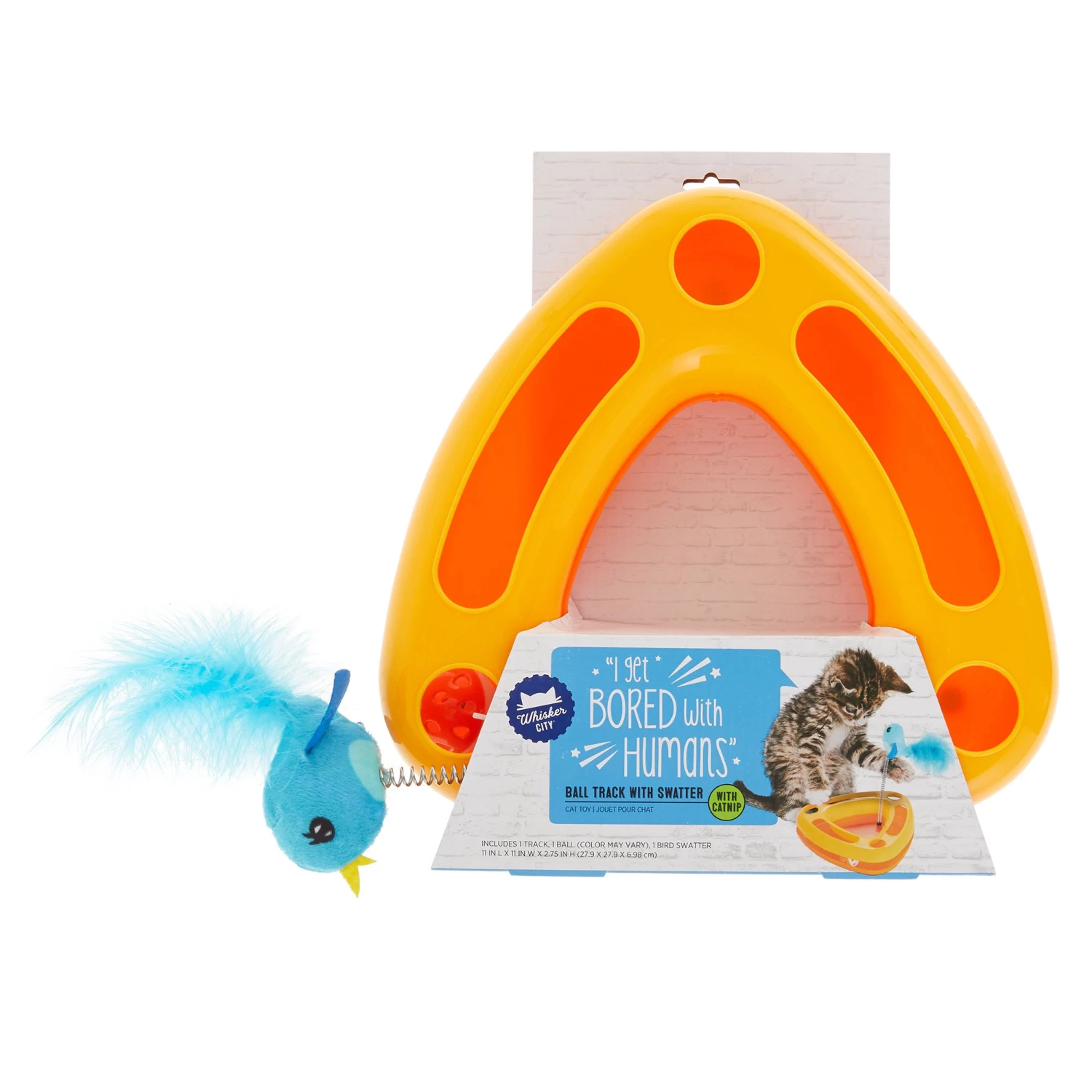 Keep your cat endlessly entertained with this Whisker City Ball Track with Swatter Cat Toy. The ball that never gets lost under a chair means fun that never stops for your cat, while the attached swatter adds to the entertainment potential. It all adds up to a toy that is great for human-free playtime. Only at PetSmart.