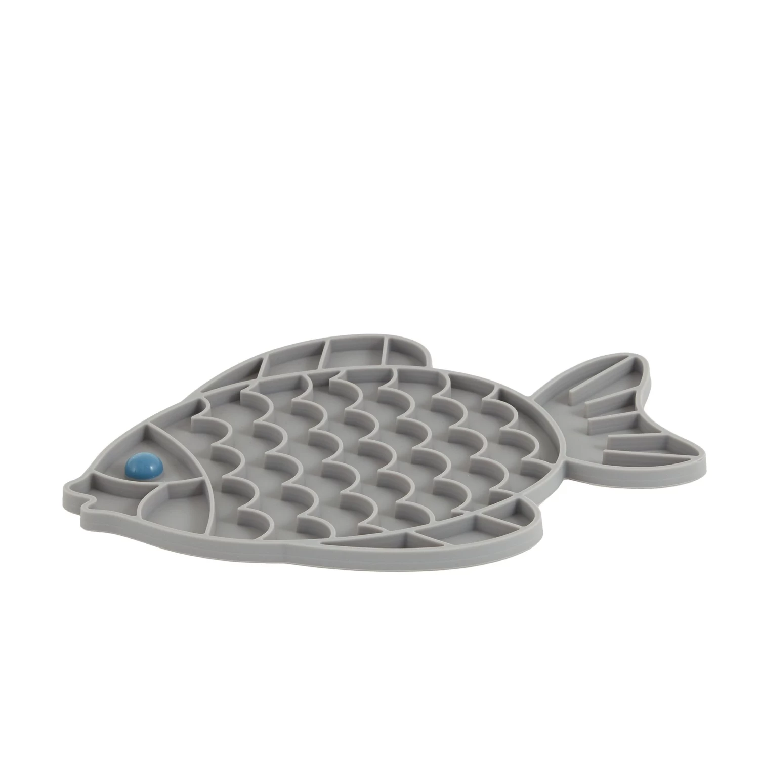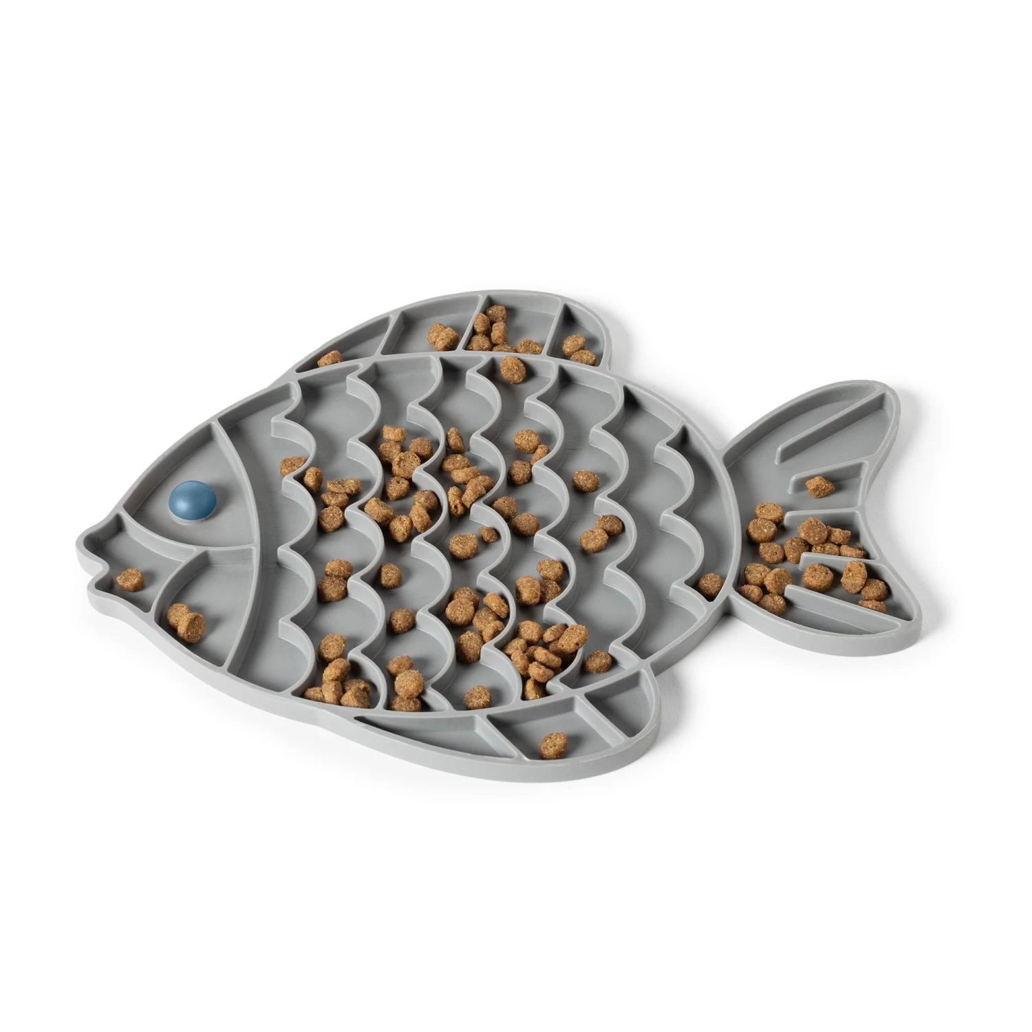 This Whisker City Grey Fish Slow Feeder Mat is specifically designed to help your cat eat slower. It features a unique puzzle design that traps kibble and turns mealtime into a mentally stimulating game. Only at PetSmart.