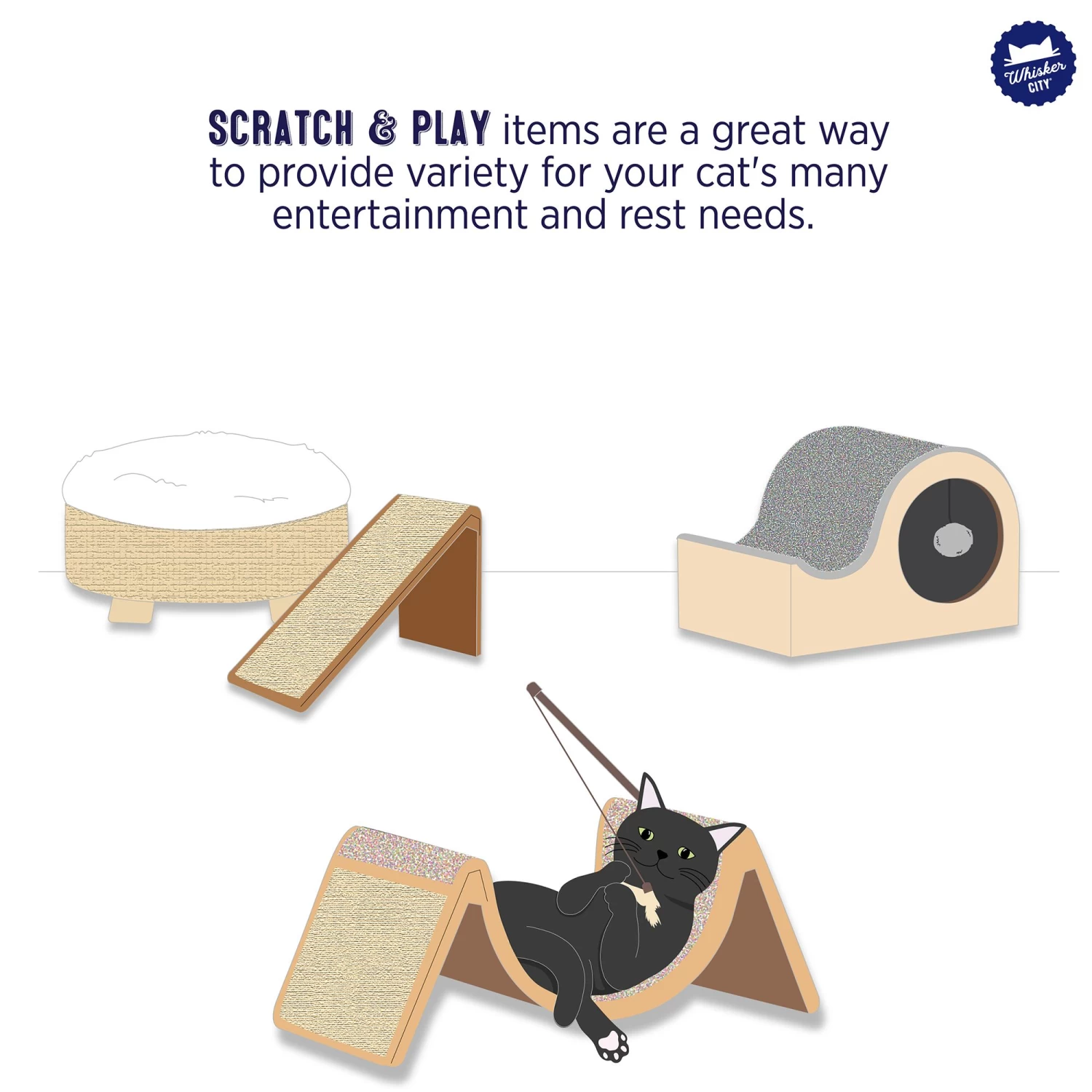 Satisfy your cat’s instinct to scratch in fun fashion with this Whisker City Grey Mod Curvy Scratcher. This scratcher features a fun curvy, wavy design that encourages positive scratching behavior, and comes with a dangling toy as well for when your kitty is feeling playful. Only at PetSmart.