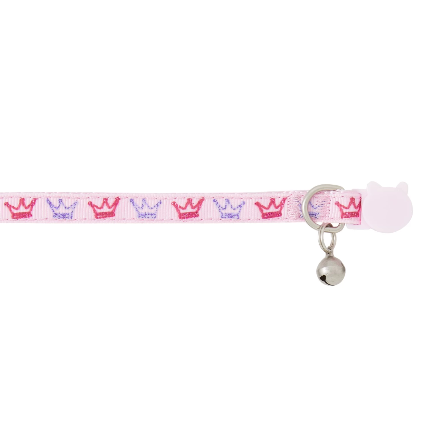 This Whisker City Easy Release Pink Princess Cat Collar looks great, and keeps your cat safer a swell. This collar was created specifically to instantly release when it becomes caught on something, freeing your kitty and preventing a possible choking situation. Comfortable and adjustable, it makes a stylish and functional choice in collars for your feline friend. Only at PetSmart.