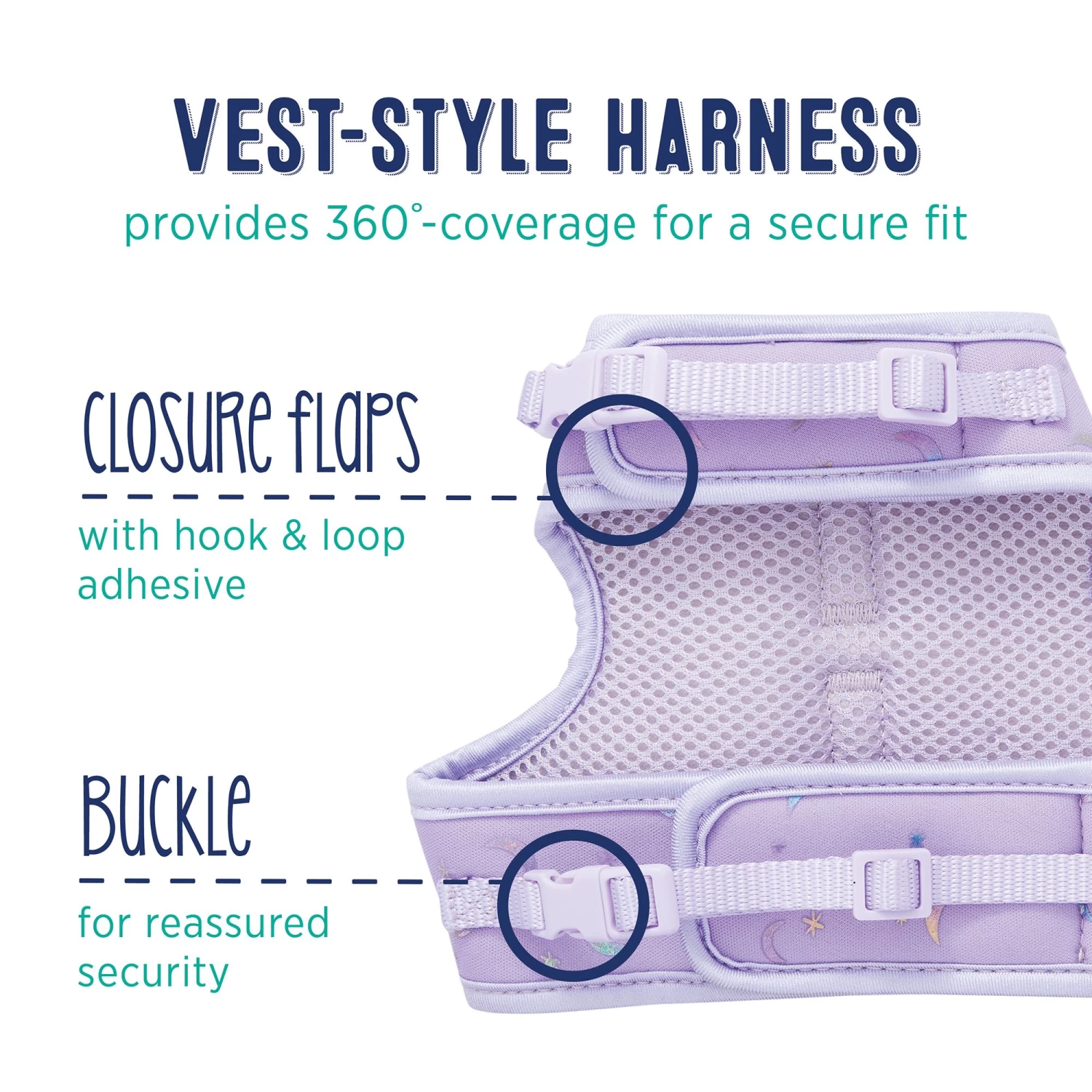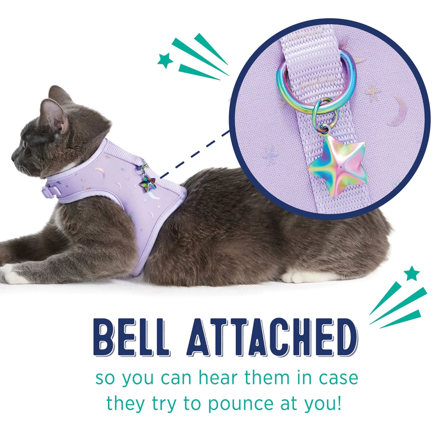 This Whisker City Purple Moons Kitten Vest Harness and Leash Combo Set is the perfect choice for enjoying outdoor excursions with your young feline friend. This combo set features a harness that is adjustable for a comfortable yet secure fit, as well as a leash that attaches to the harness for fun and relaxed walks with your kitten.