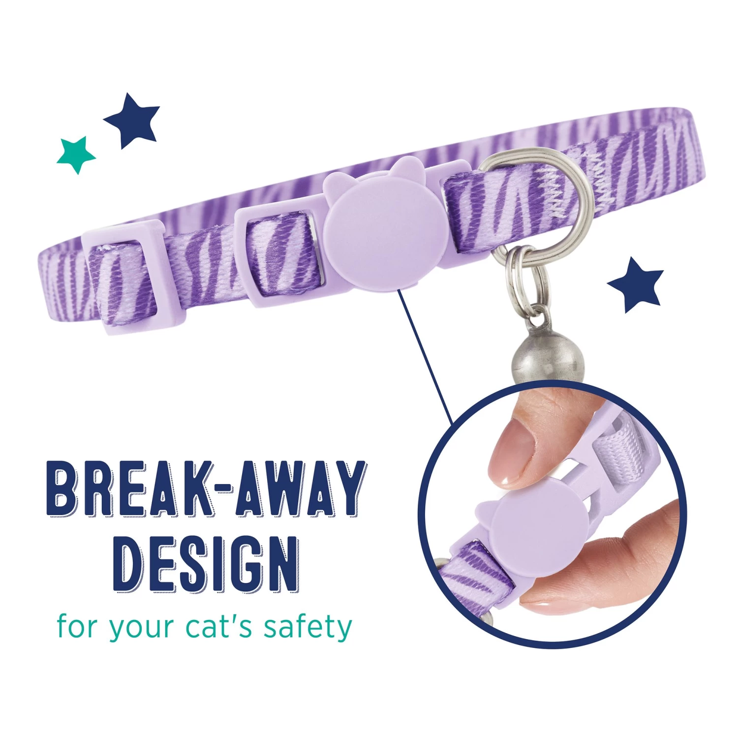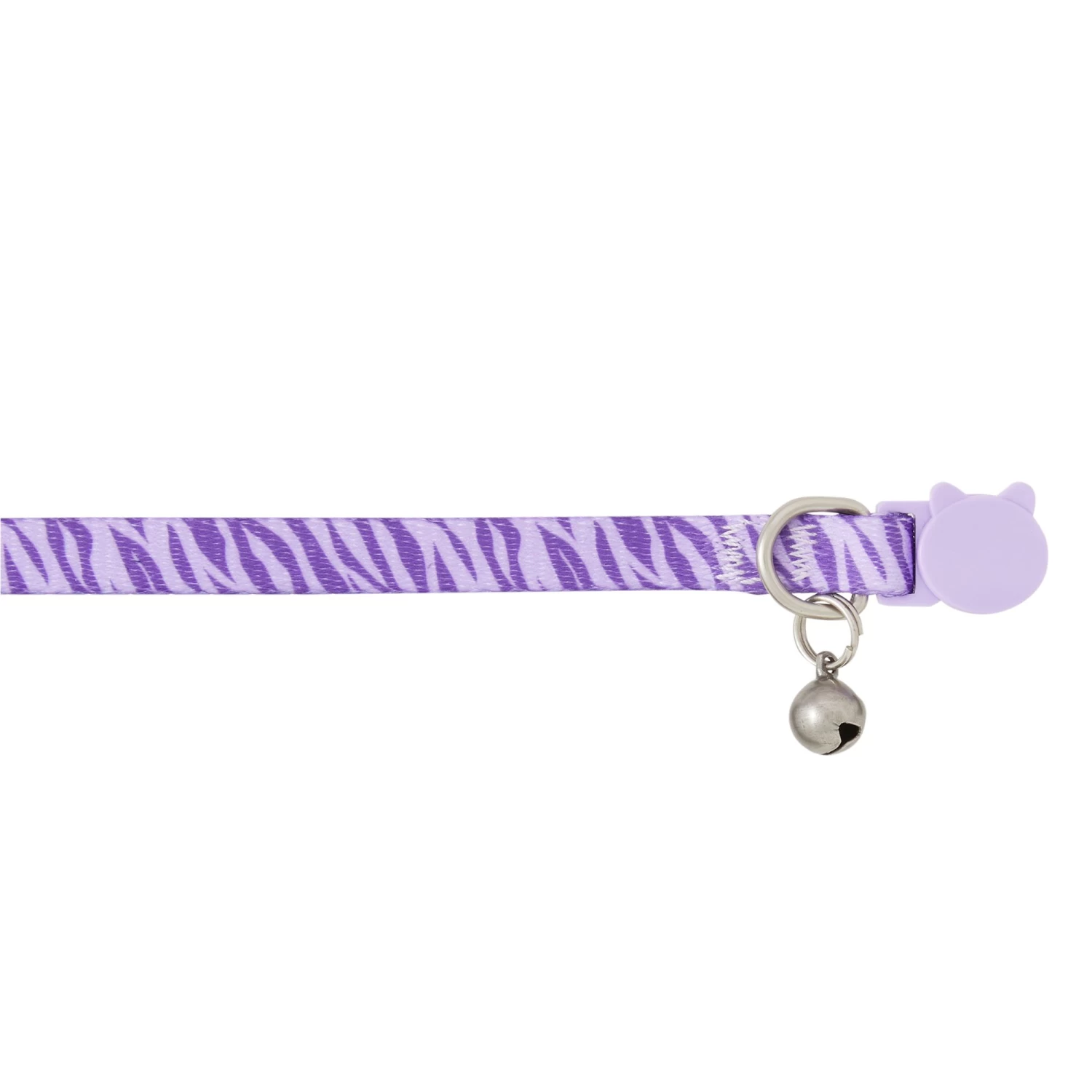 This Whisker City Easy Release Purple Zebra Cat Collar looks great, and keeps your cat safer a swell. This collar was created specifically to instantly release when it becomes caught on something, freeing your kitty and preventing a possible choking situation. Comfortable and adjustable, it makes a stylish and functional choice in collars for your feline friend. Only at PetSmart.