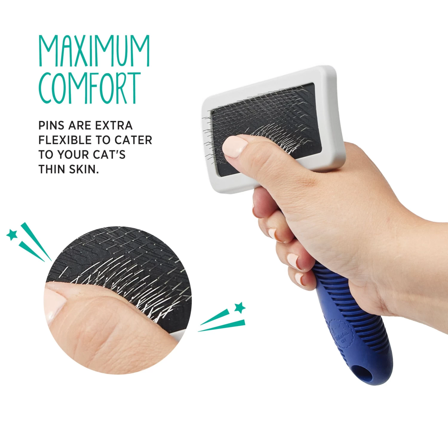 Keep your kitty’s skin and coat looking their best with the help of this Whisker City Slicker Brush. Pamper and bond with your furry friend using this brush, which works gently to untangle hair and remove loose hair to keep her coat healthy and beautiful. Only at PetSmart.
